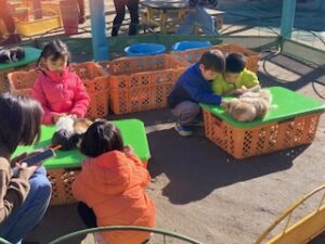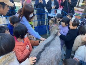 2学期の最終日ですが、なんといちご動物園がやってきました。幼稚園のお庭が動物園になっちゃったんです!!