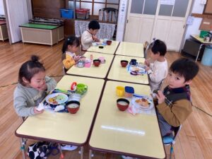寒い日だったので、シチューを食べると「あったかーい」と口々に言っていました。そして、こちらが思っていた以上におかわりしていました。今月もとっても美味しくいただきました。