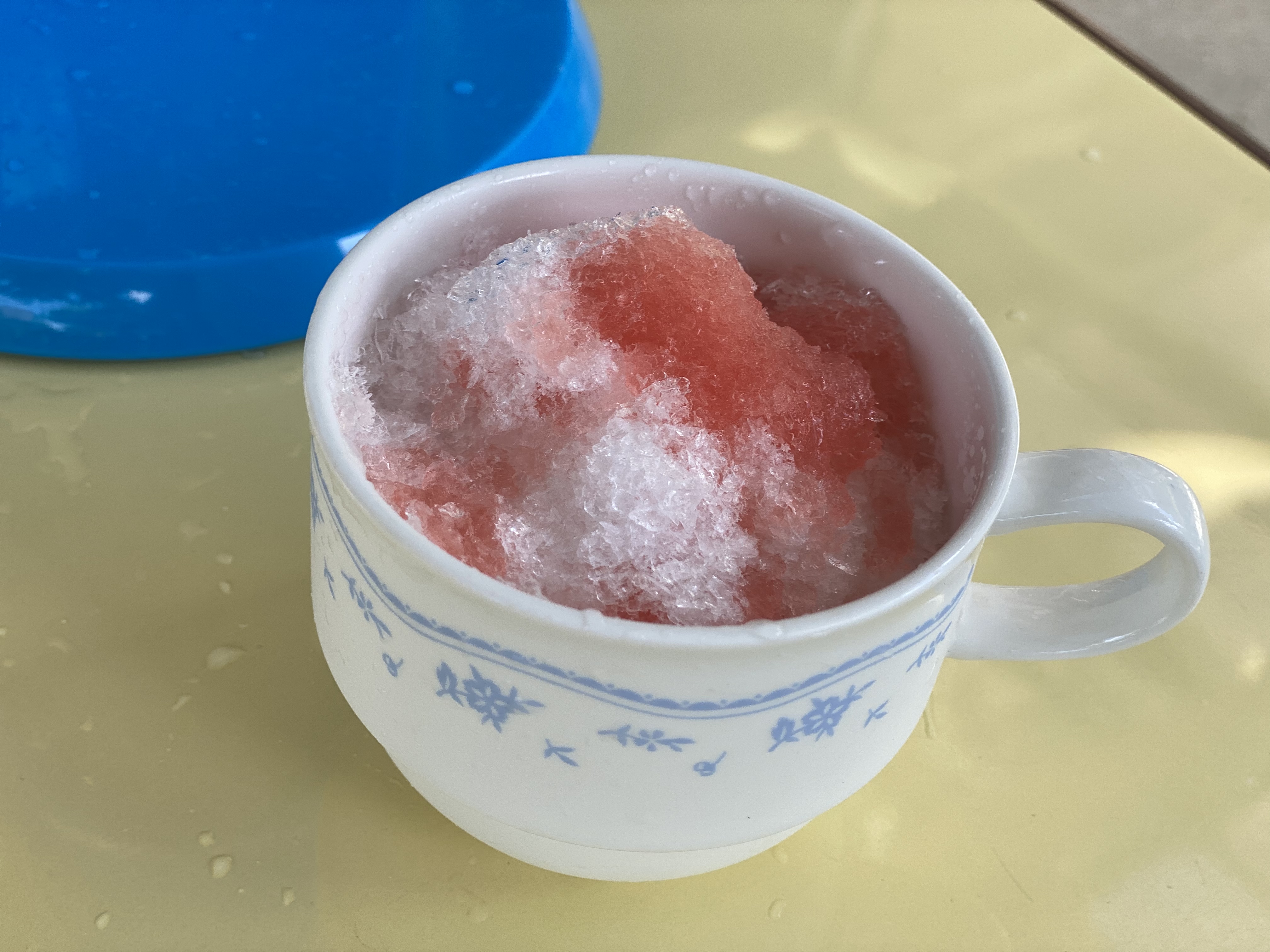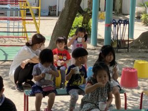 ちなみに、はじめの画像は撮影用の大盛りかき氷!子どもたちはカップに1/3くらいの量となります。