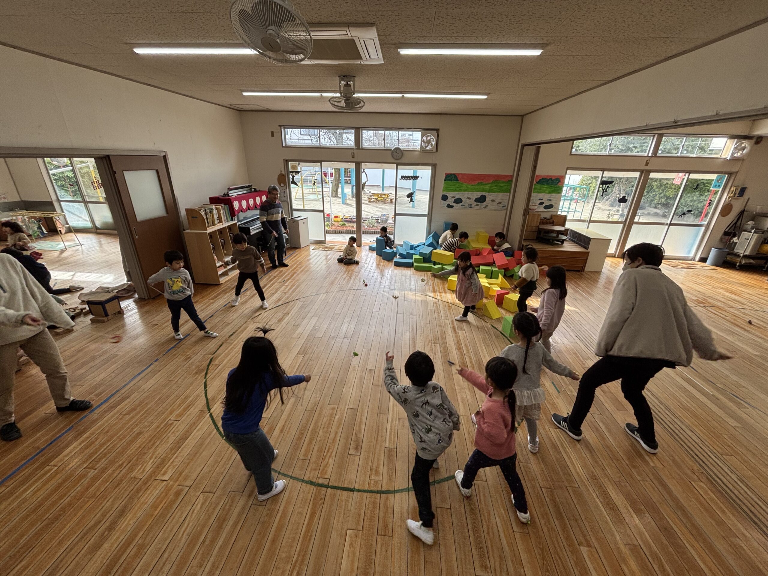 はじめは、なかなか回す事が出来なかった子も、練習を何回も何回も何回もやっているとちょっとずつ上達していきます。紐を巻くのも、これまた大変。何回も何回も何回も何回も練習します。頑張って練習していると上手に回せるようになるのです。