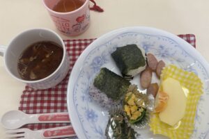 台拭きを水が出なくなるまでギュッギュッと何度も絞る姿がまだぎこちないですが頑張って自分でやっています。お茶を注ぐ練習を初めてした日には、お弁当時にお茶を自分で注ぐのが楽しみで何回もおかわりしてみんなお腹がチャポチャポになっていました!