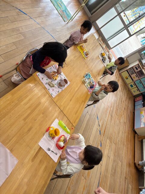そして、昨日は初めての給食の日でした!「これは何かなー?」「どんな味がするかなー?」とみんなで話しながらたくさん食べることができました!
