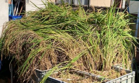 4月に植えた稲が大きくなりました。バナナのかかしが守ってくれ沢山のお米が実りました。 田村のおじさんやミッキーのおじさんに手伝ってもらいながら稲刈りです。まずは鎌の使い方などを教えて貰います。 怪我をしない…