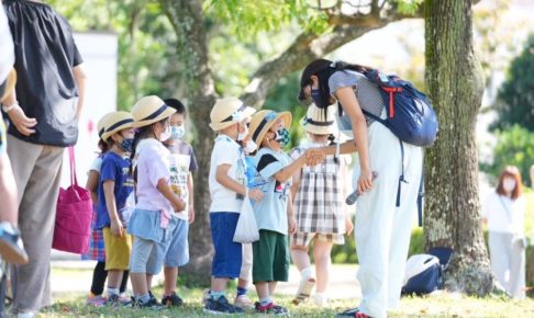 ピカピカの青空の中名古屋港ガーデン埠頭臨港緑園へ秋の遠足に行きました。春の遠足はコロナウィルス感染症の影響で行くことができなかったので、今年度はじめての遠足となりました。 この日は公園で待ち合わせ。お家の方々も一緒に参加…