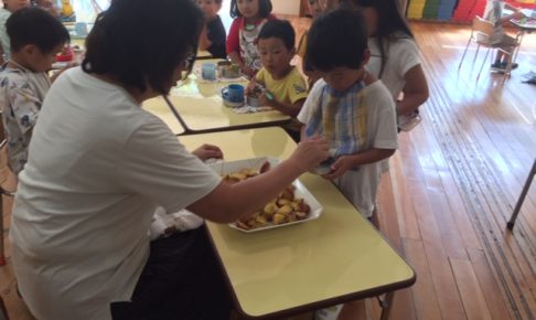 たくさんサツマイモをいただいたので、みんなで食べました。シンプルに蒸したおいもです。 こんなに大きい口で「あーん、ぱくっ!」 まだまだおいしい秋は続きそうです!