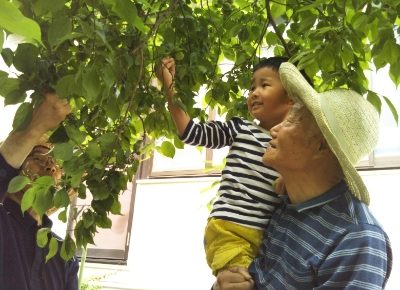 梅の実がたくさん付きました。のぞみさんが田村さんと倉永さんにお手伝いしてもらい、収穫しました。 玉ねぎもとり、ひまわりの苗も植えました。 たくさん教えてくれてありがとう! その後、あい組さんは田植えをしました。 お昼には…